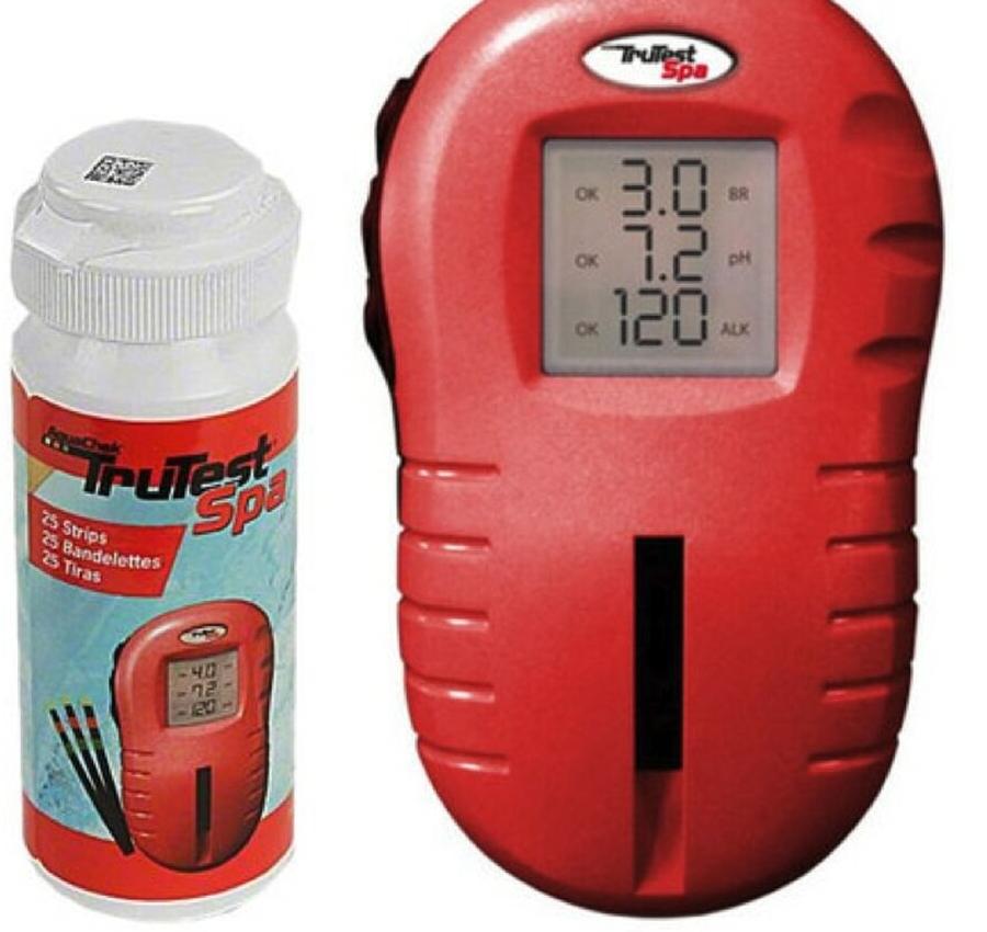 Rellene las tiras reactivas para usarlas con el lector digital rojo AquaChek TruTest Spa.