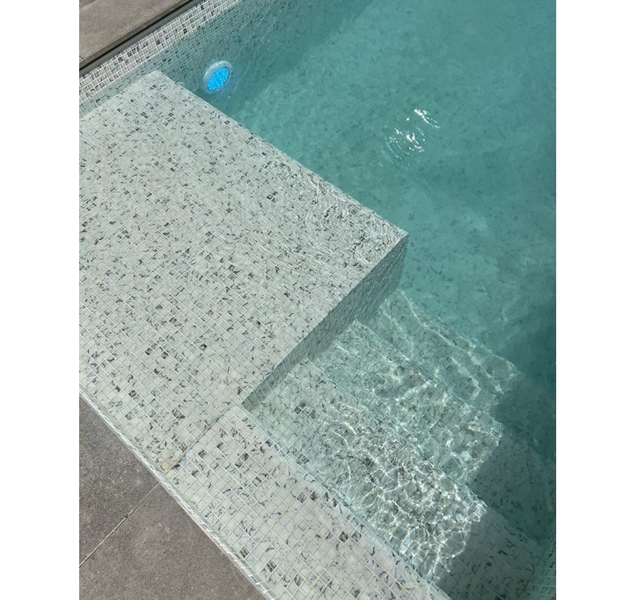 Mosaico de vidrio KA 01 – Calacatta, de la coleccion KARMA de Reviglass.